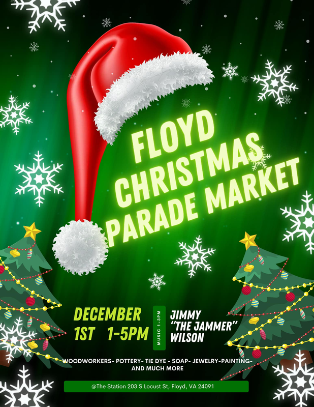 The Floyd Artisan Market presents the Annual Floyd Christmas Parade Market with Music from Jimmy "The Jammer" Wilson on Sunday, December 1, 2024 at the Floyd Community Market Pavilion.