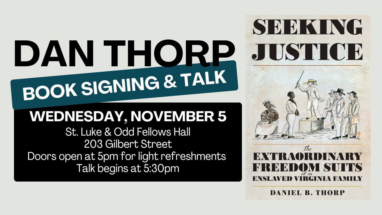 Virginia Tech History professor Dan Thorp has recently published his latest book entitled "Seeking Justice" and will join us for a book signing and presentation.