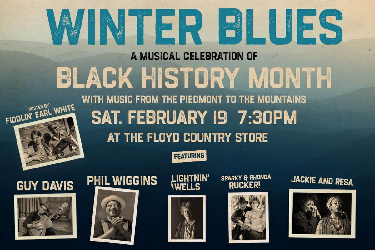 The Floyd Country Store presents "Winter Blues: A Musical Celebration of Black History Month with Music from the Piedmont to the Mountains" on Saturday, February 19, 2022.