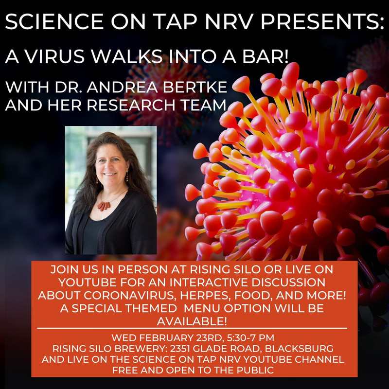 Science on Tap - New River Valley presents the program "A Virus Walks Into A Bar" on Wednesday, February 23, 2022 at Rising Silo Farm Brewery in Blacksburg, VA.