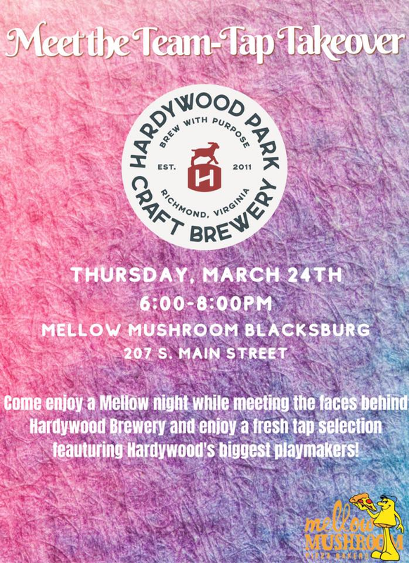 Mellow Mushroom presents a Hardywood Brewery Meet the Team and Tap Takeover on Thursday, March 24, 2022.