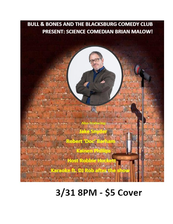 Bull & Bones Brewhaus & Grill presents Comedy Night featuring Science Comedian Brian Malow on Thursday, March 31, 2022.