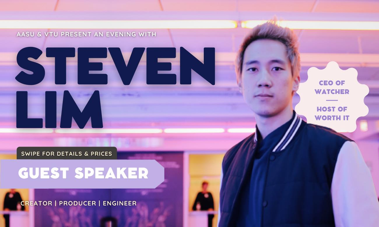 The Virginia Tech Asian American Student Union and Virginia Tech Union presents An Evening with CEO of Watcher and Host of "Worth It" Steven Lim as their annual guest speaker on Sunday, April 3, 2022 inside the Haymarket Theater located within the Squires Student Center on the campus of Virginia Tech.
