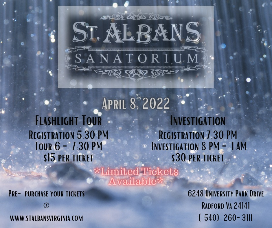 We recommend wearing comfortable shoes and to bring a flashlight. You're invited to bring any investigative equipment you may have to aid in your own paranormal experiences. Our volunteer guides typically have equipment to share.