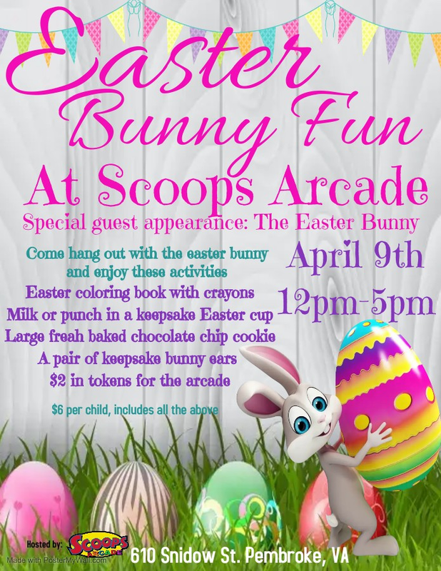 Scoops Arcade presents their 2022 Easter Bunny Fun event on Saturday, April 9, 2022.