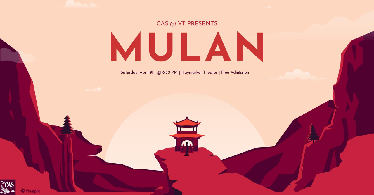 The Chinese American Society at Virginia Tech presents their annual culture show titled "Chinabration 2022: Mulan" on Saturday, April 9, 2022 at Haymarket Theater inside the Squires Student Center on the campus of Virginia Tech.