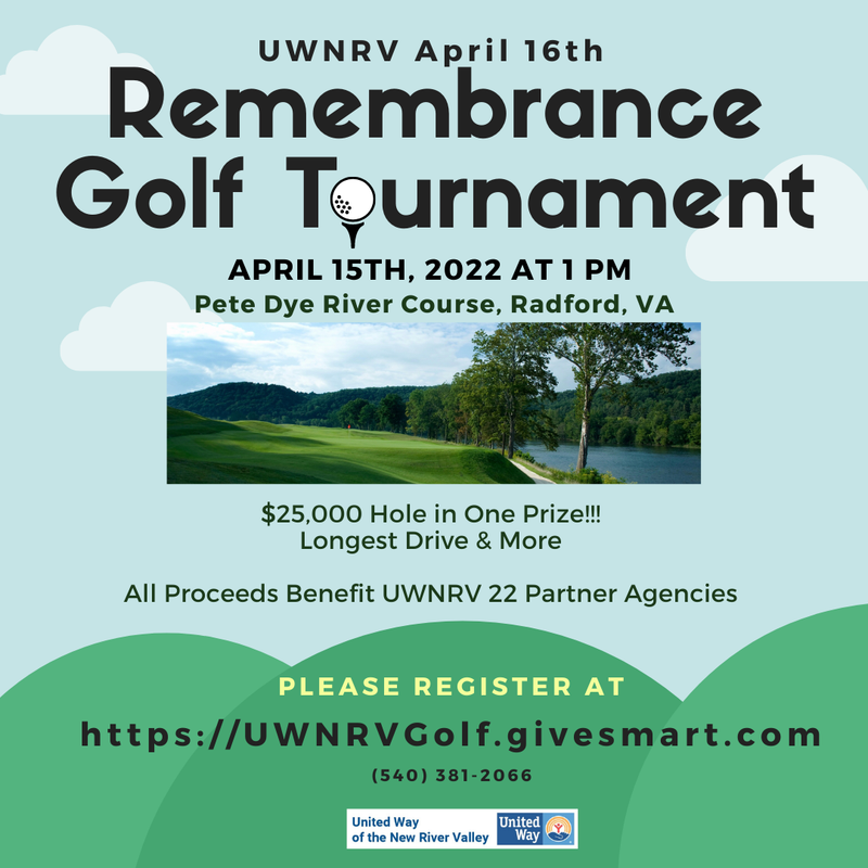 United Way NRV presents their 2nd Annual Remembrance Golf Tournament on Friday, April 15, 2022 at the Pete Dye River Course.