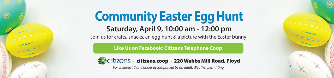 Citizens Telephone Coop presents hosts their 2022 Community Easter Egg Hunt on Saturday, April 9, 2022.