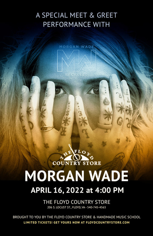 Please join us for an intimate opportunity to celebrate the success of Floyd's own Morgan Wade! The Floyd Country Store and Handmade Music School are super proud of Morgan and invited her to come back home for a special meet and greet and performance.