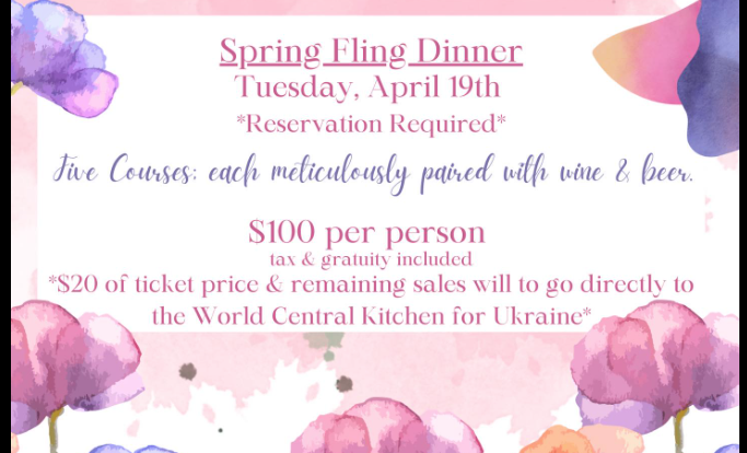 Palisades Restaurant presents their 2022 Spring Fling Dinner on Tuesday, April 19, 2022.