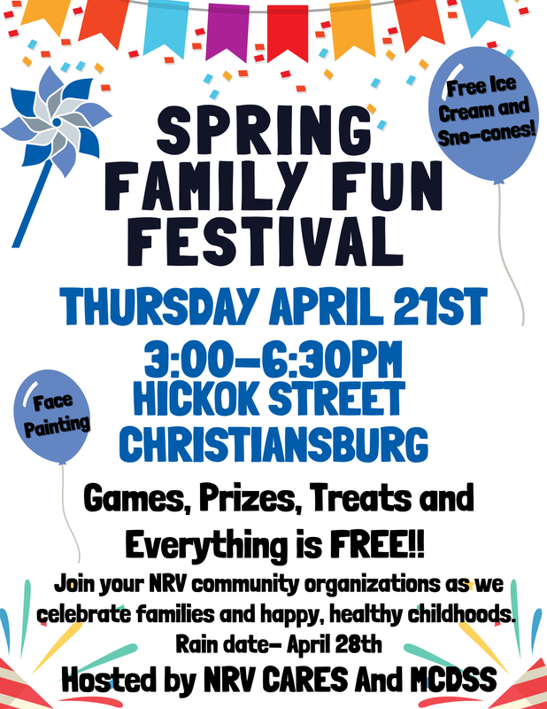 NRV Cares presents the 2022 Spring Family Fun Festival on Hickok Street in downtown Christiansburg, VA on Thursday, April 21, 2022.