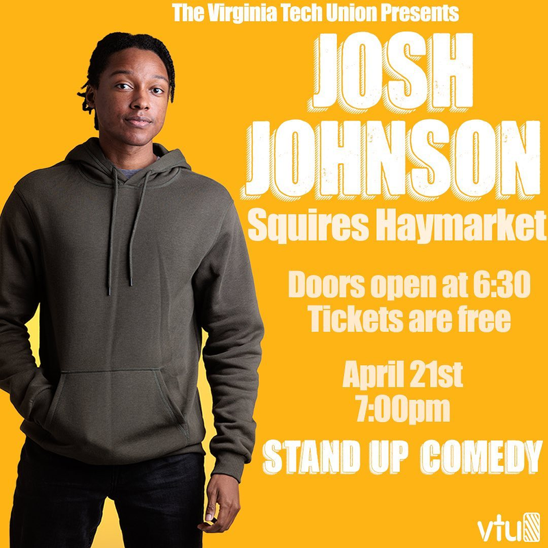 Virginia Tech Union presents their 2022 Spring Comedy Event featuring comedian Josh Johnson on Thursday, April 21, 2022 at Haymarket Theater inside the Squires Student Center on the campus of Virginia Tech.