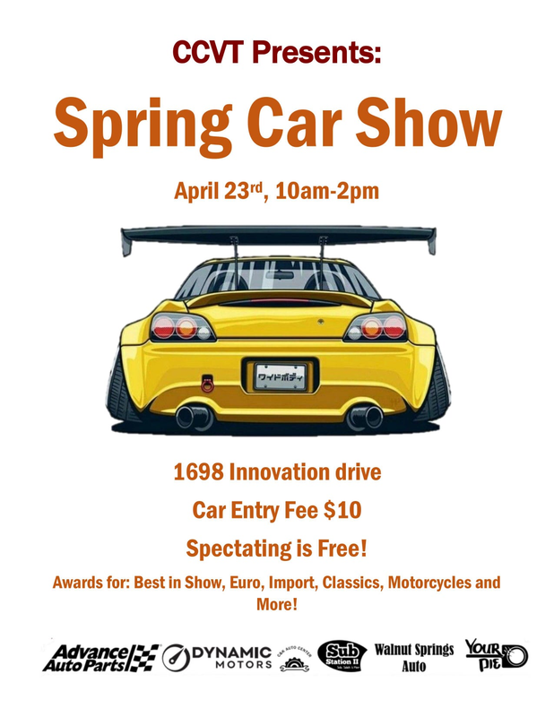 The Car Club at Virginia Tech (CCVT) presents their 2022 Spring Car Show on Saturday, April 23, 2022 in the parking lot at 1698 Innovation Drive in Blacksburg, VA within the Virginia Corporate Research Center.