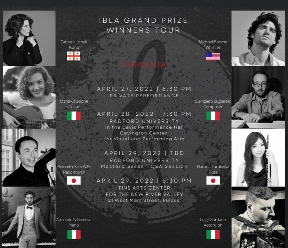 The Fine Arts Center For The New River Valley presents the 2022 IBLA Grand Prize Performance Concert on Friday, April 29, 2022.