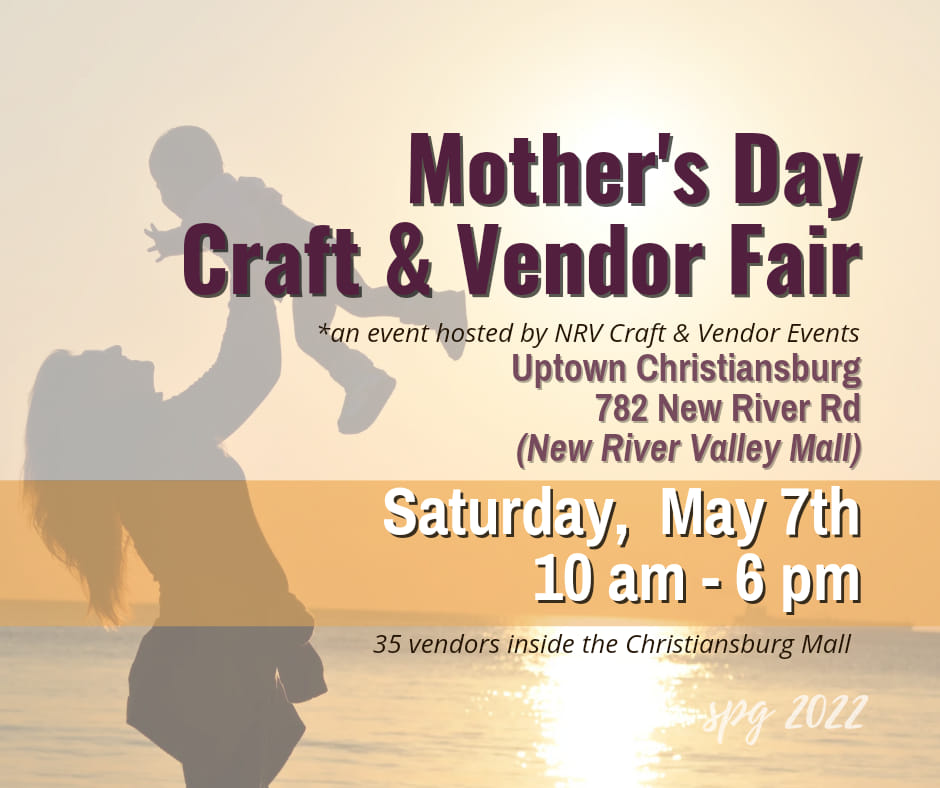 NRV Craft & Vendor Events hosts a Craft & Vendor Fair on Saturday, April 2, 2022 at Uptown Christiansburg (New River Valley Mall).