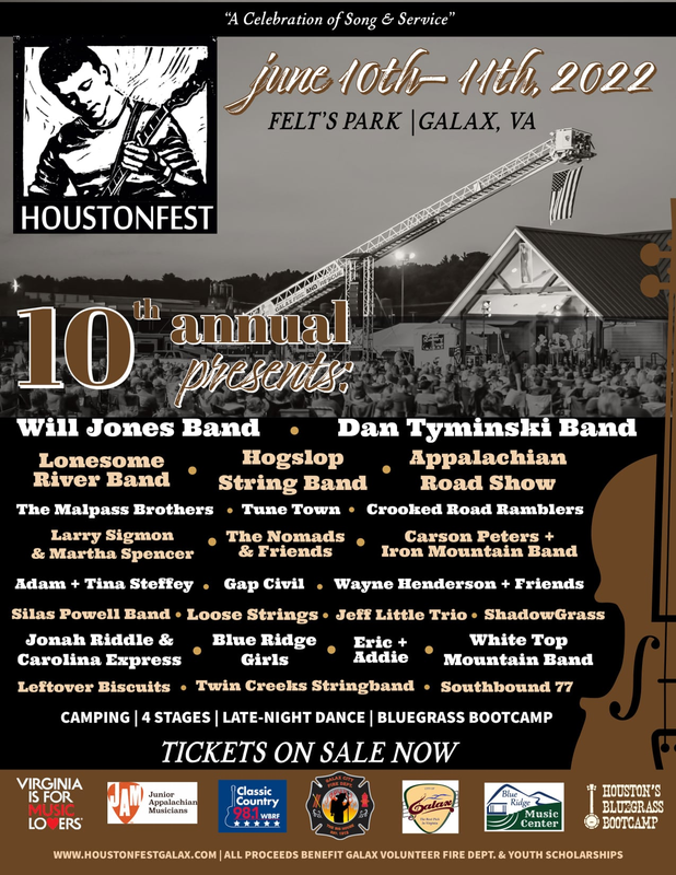 Proceeds from HoustonFest will go to the Galax Volunteer Fire Department with discretionary contribution to be made to local youth music and service education programs.