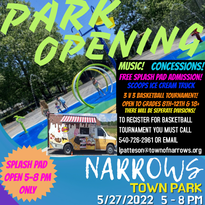 Come on out and enjoy all the great fun at the Narrows Town Park