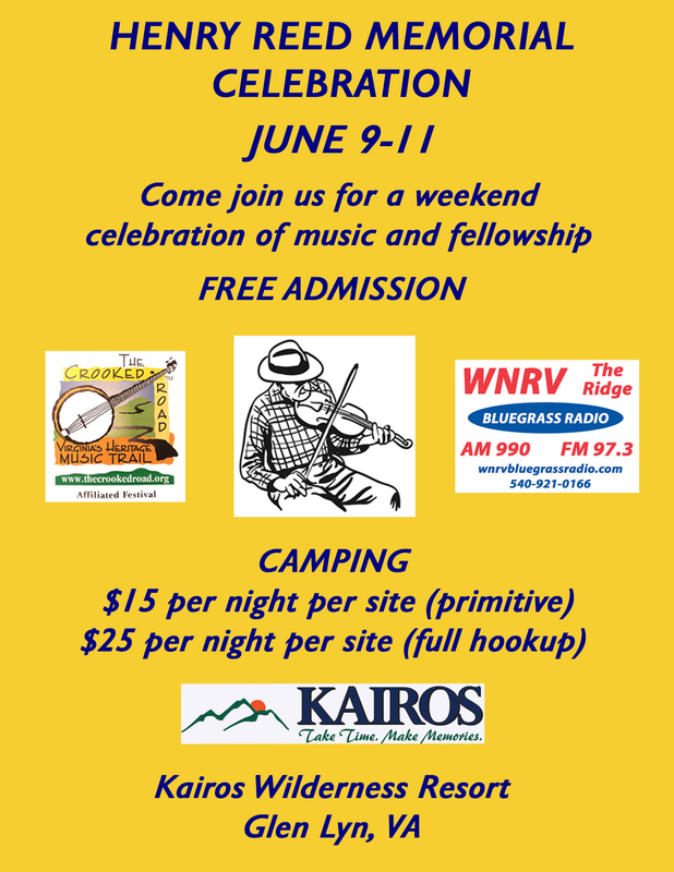The 18th Annual Henry Reed Memorial Fiddlers Convention will be held on Thursday, June 9, 2022 through Saturday, June 11, 2022 at Kairos Wilderness Resort in Glen Lyn, Virginia.