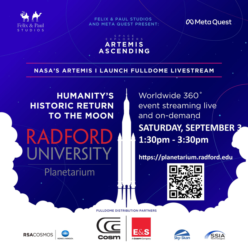 Radford University Planetarium presents the NASA's Artemis I Launch Fulldome Livestream on Saturday, September 3, 2022.