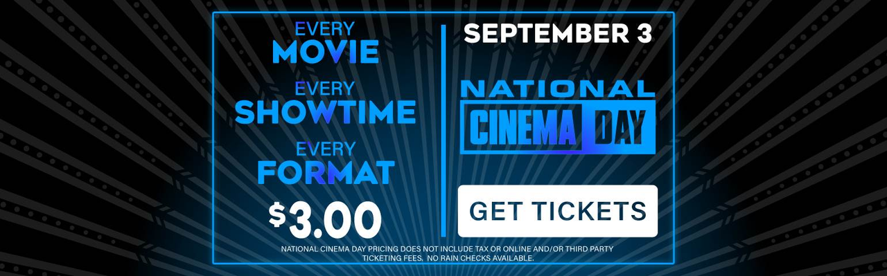 B&B Theatres Blacksburg 11 presents National Cinema Day - All Movies, All Day $3.00 on Saturday, September 3, 2022.