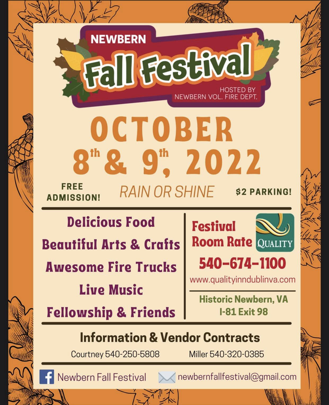 https://www.facebook.com/NewbernFallFestival or email newbernfallfestival@gmail.com or call Courtney at 540-250-5808 or Miller at 540-320-0835.