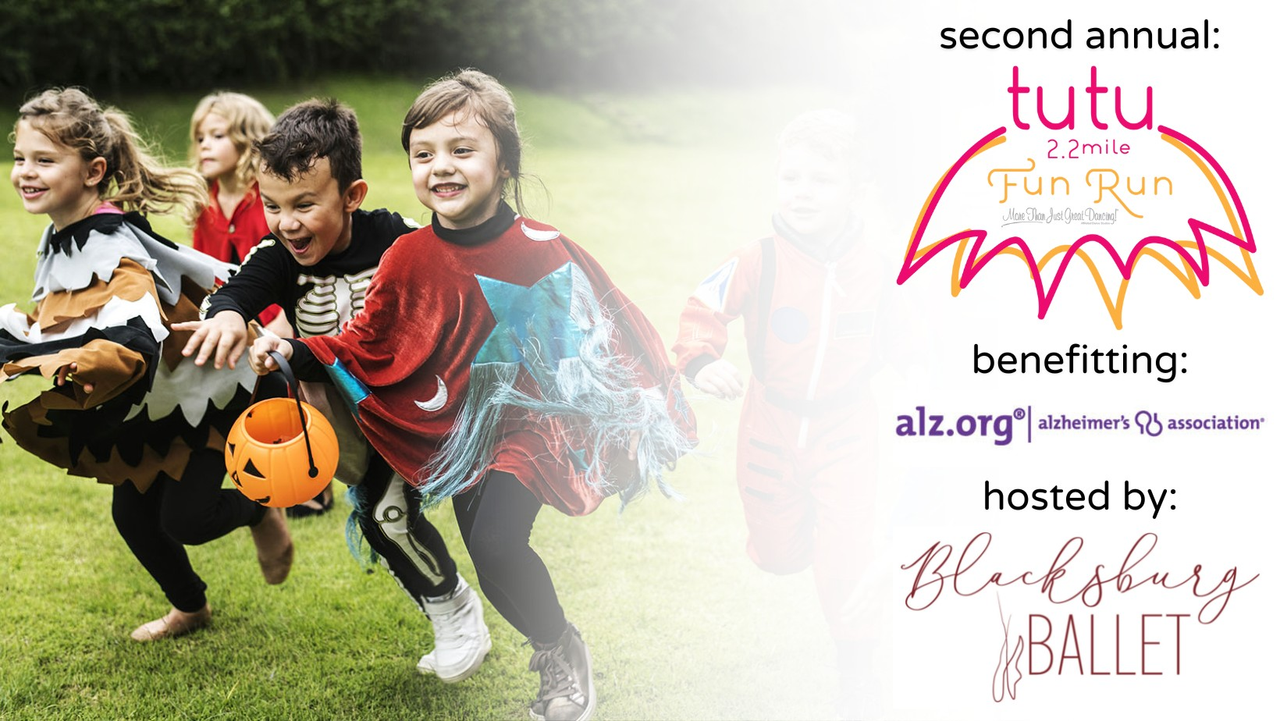 Blacksburg Ballet presents the 2nd Annual 2.2 Tutu Fun Run on Saturday, October 29, 2022 at Nellie's Cave Park in Blacksburg, VA.