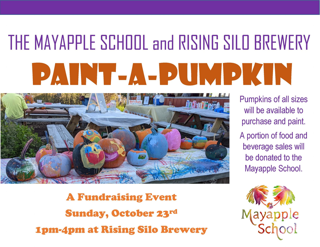The Mayapple School and Rising Silo Farm Brewery present the annual Paint-a-Pumpkin Fundraiser on Sunday, October 23, 2022 at Rising Silo Brewery.