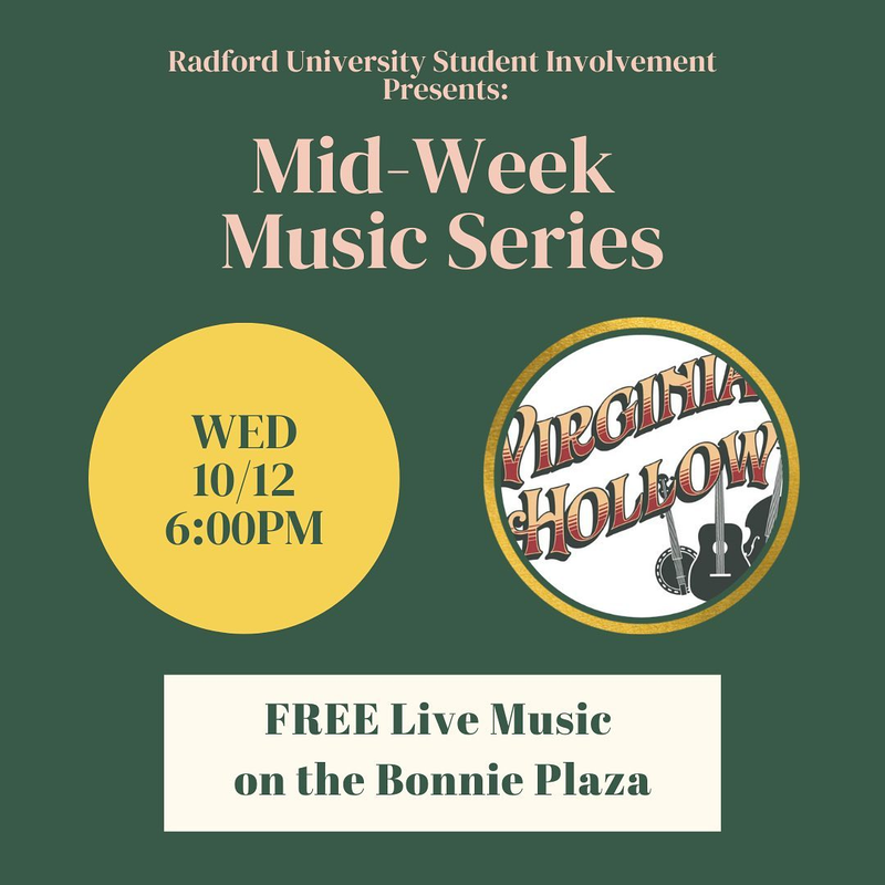 Radford University Student Involvement continues the Mid-Week Music Series featuring Virginia Hollow performing on Wednesday, October 12, 2022 outside the Bonnie Hurlburt Student Center at the Bonnie Plaza on the campus of Radford University.