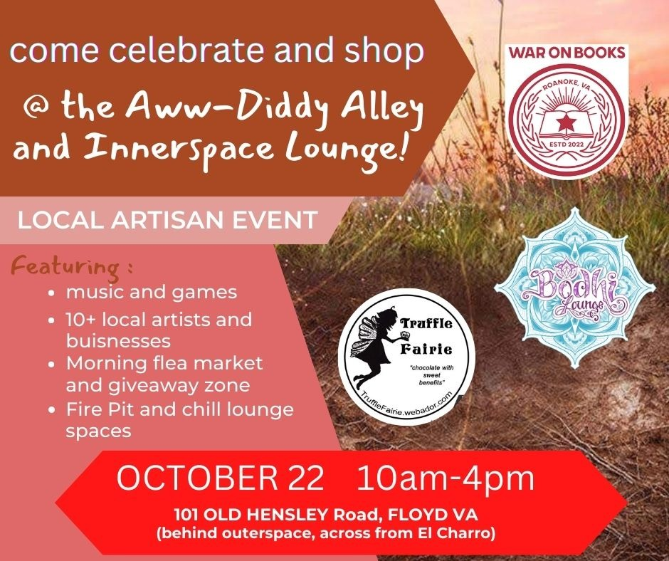 The Aww-Diddy Alley and Innerspace Lounge presents an Artisan Event with Music, Games & More on Saturday, October 22, 2022.