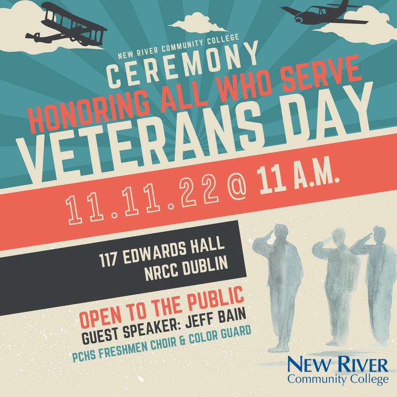 New River Community College Veterans Office presents the 2022 Veterans Day Ceremony on Friday, November 11, 2022 inside Edwards Hall on New River Community College's Dublin, VA campus.