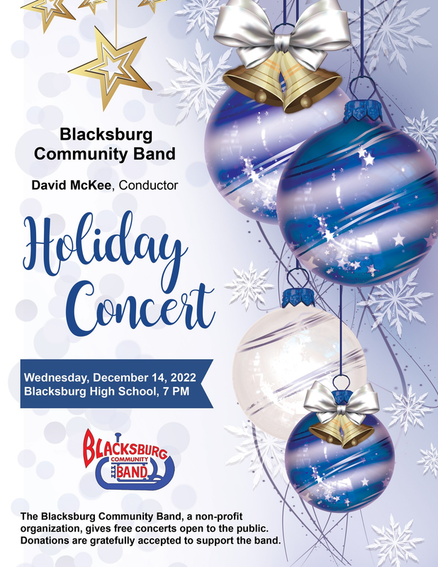 Blacksburg Community Band presents their Winter Concert on Wednesday, December 14, 2022 inside the Blacksburg High School Auditorium.