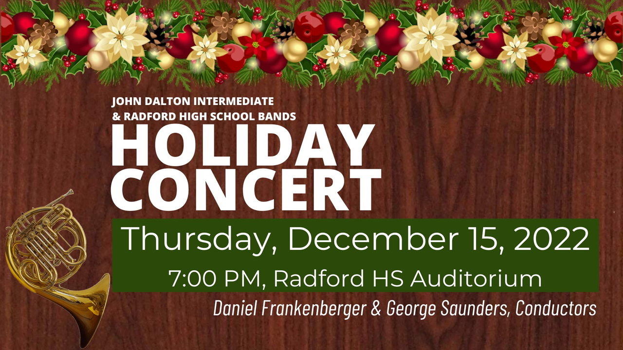 Radford High School presents the John Dalton Intermediate and Radford High School Bands Holiday Concert on Thursday, December 15, 2022 inside the Radford High School Auditorium.