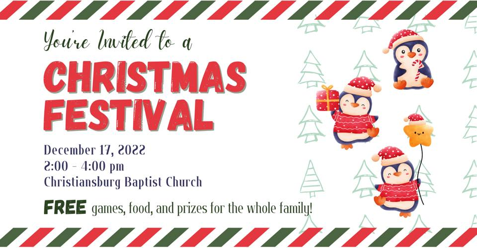 Christiansburg Baptist Church presents their Christmas Festival on Saturday, December 17, 2022.