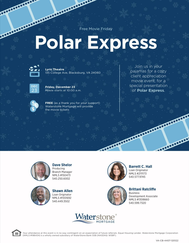 Waterstone Mortgage Corporation presents a special Free Movie Friday with The Polar Express on Friday, December 23, 2022 at The Lyric Theatre.