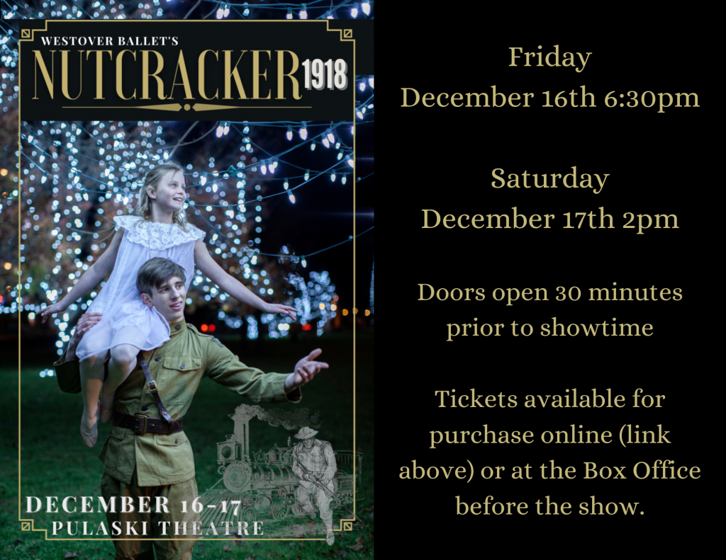 Westover Ballet presents Nutcracker 1918 on Friday, December 16, 2022 and Saturday, December 17, 2022 at the Pulaski Theatre.