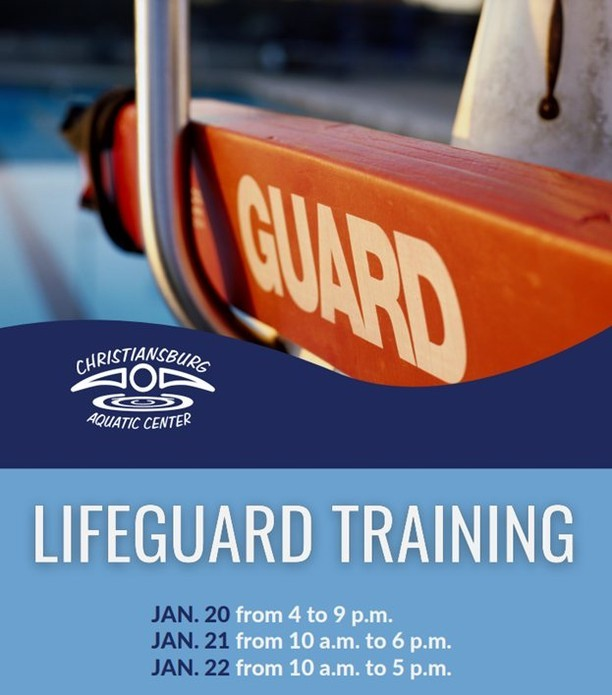 Christiansburg Aquatic Center presents a Three-Day Lifeguard Training starting on Friday, January 20, 2023 through Sunday, January 22, 2023.