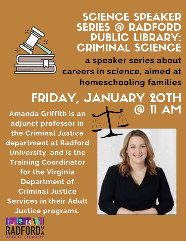 The Radford Public Library continues their Homeschool Science Series focusing on Criminology on Friday, January 20, 2023.