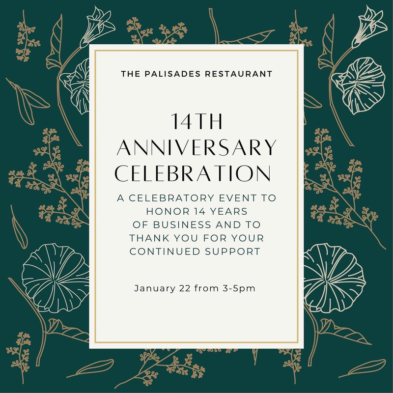 Palisades Restaurant presents their 14th Anniversary Celebration with Music from the Mudflaps on Sunday, January 22, 2023.