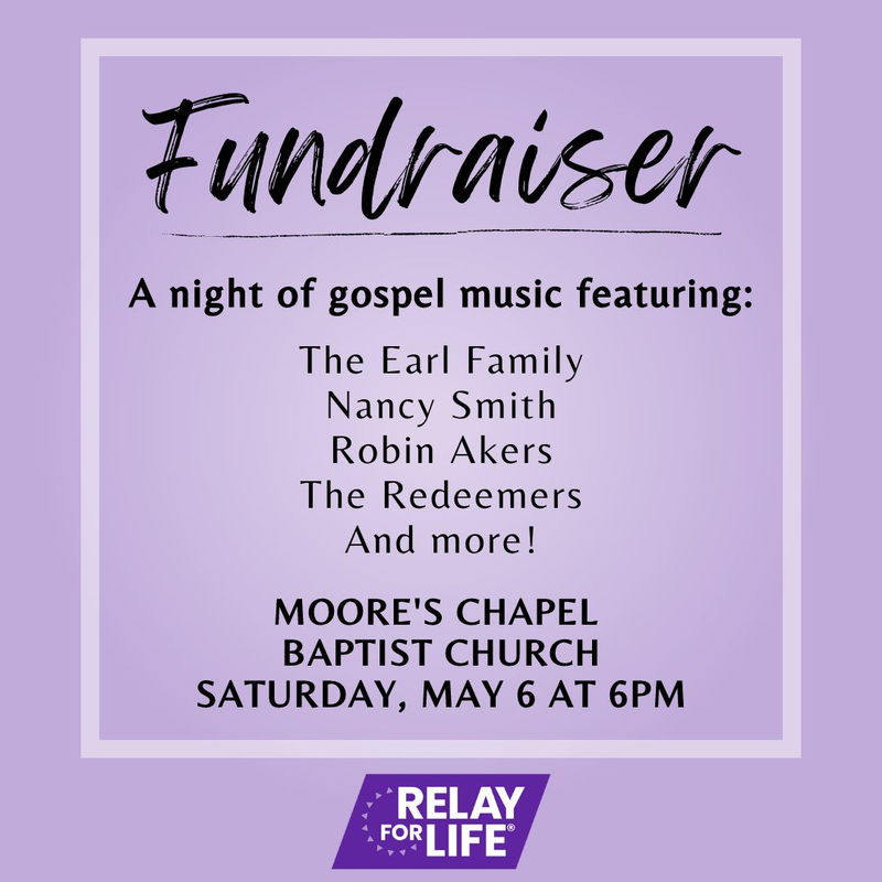 Relay for Life of Montgomery County, VA presents The Redeemers Fundraiser on Saturday, May 6, 2023 at Moore's Chapel Baptist Church in Elliston, VA.