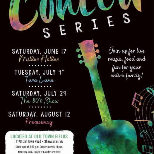 Old Town Fields, LLC and Eastmont Community Foundation continues the 2023 Oldtown Nights Concert Series with their July 4th Celebration featuring the music of the Tara Lane Band followed by fireworks on Tuesday, July 4, 2023 at Oldtown Fields in Shawsville, VA.