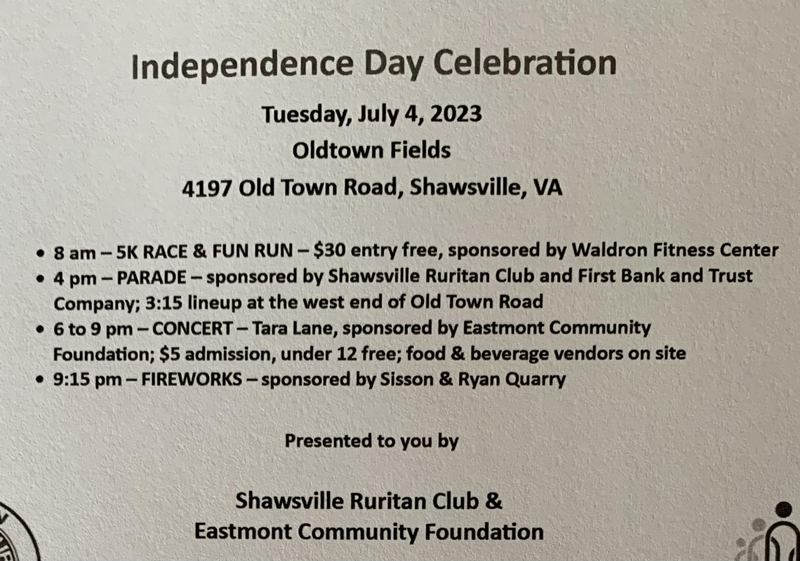 The Shawsville Ruritan Club presents the 2023 Shawsville Independence Day Parade on Tuesday, July 4, 2023 along Old Town Road.