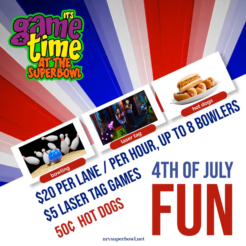 NRV Superbowl presents 4th of July Fun on Tuesday, July 4, 2023.
