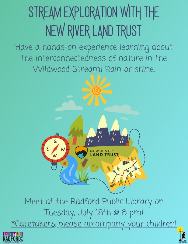 The Radford Public Library presents Stream Exploration with New River Land Trust on Tuesday, July 18, 2023.