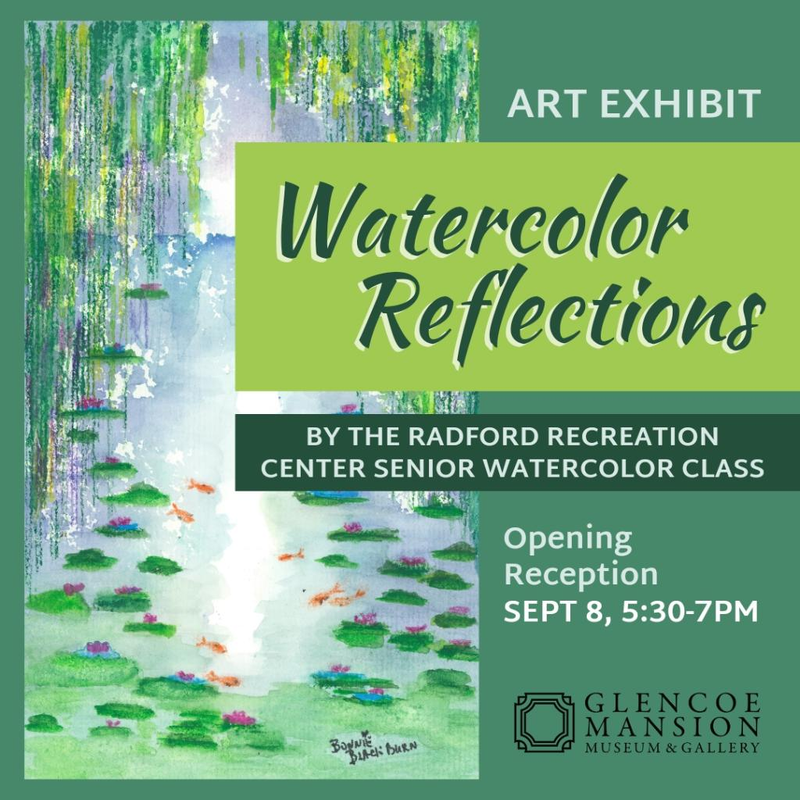 Glencoe Mansion is pleased to announce its new art show, "Watercolor Reflections," featuring the works of The Watercolor Class at the Radford Recreation Center.