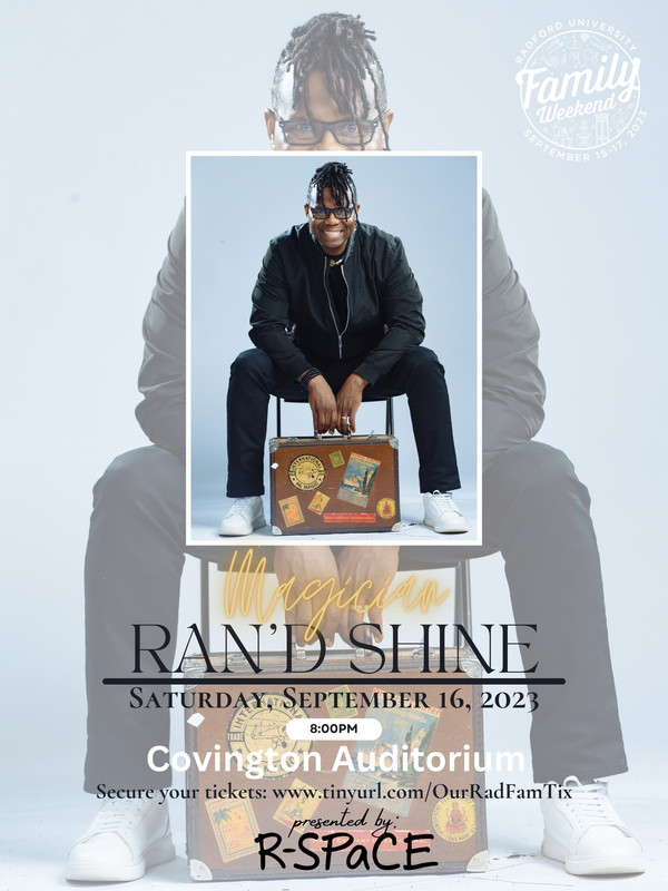 Radford University Student Involvement and R-Space presents the 2023 Family Weekend Magic Show featuring Ran'd Shine on Saturday, September 16, 2023 inside Performance Hall located within the Covington Center on the campus of Radford University.