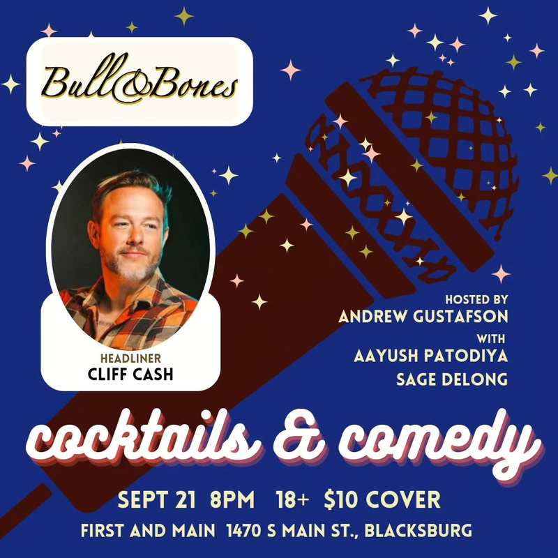 Bull & Bones Brewhaus & Grill presents the next edition of Cocktails & Comedy with Headliner Cliff Cash on Thursday, September 21, 2023.