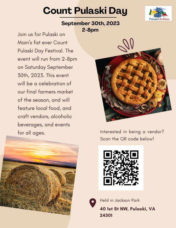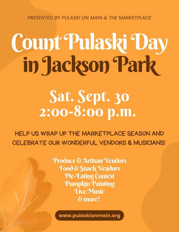 The Count Pulaski Day Festival will close out our Pulaski Marketplace season and give you one more opportunity to support our wonderful vendors this fall. This event will feature live music performances, local produce and meats, artisan and craft vendors, Pie-Eating Contest, pumpkin painting, alcoholic beverages, food trucks, and fun for the entire family.