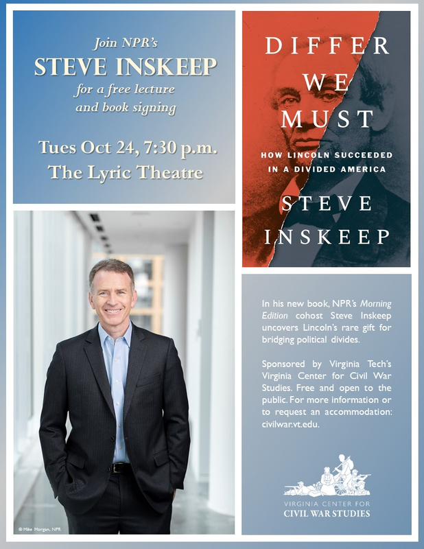 The Virginia Center for Civil War Studies at Virginia Tech presents the free lecture with NPR's Steve Inskeep on Tuesday, October 24, 2023 at The Lyric Theatre.
