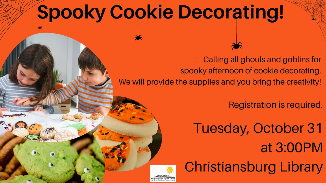 Christiansburg Library presents Spooky Cookie Decorating on Tuesday, October 31, 2023.