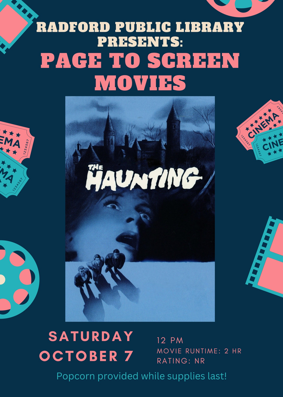 Radford Public Library continues their Page-to-Screen series for adults featuring the movie "The Haunting" on Saturday, October 7, 2023.
